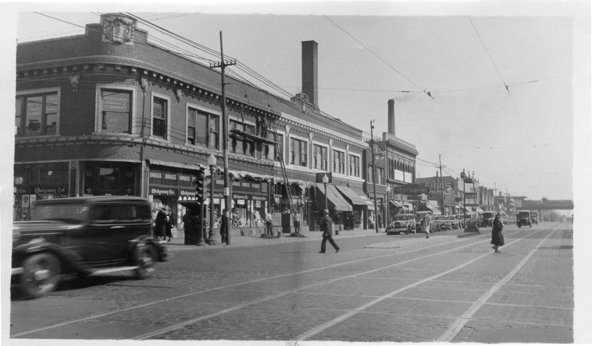 | Walgreen Co. is on the corner in this 1922 photograph of Western and Lawrence. Walgreens is still located at the intersection on the Northeast side. |