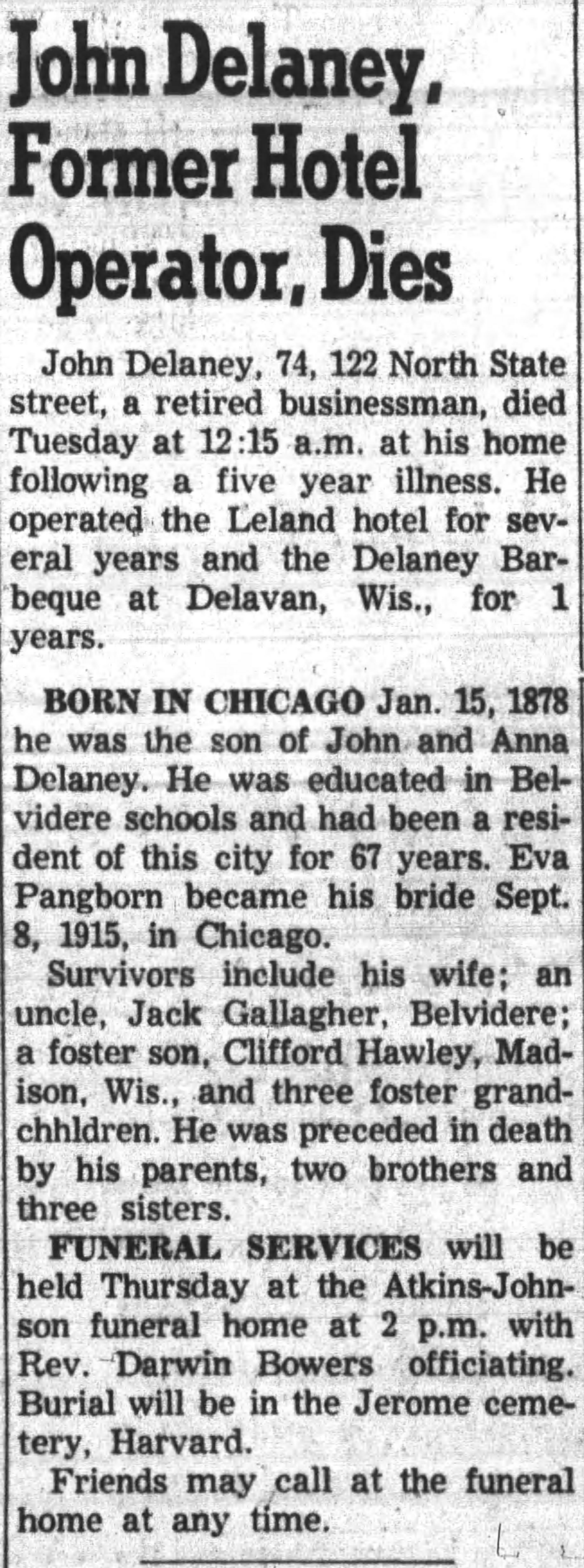 I found articles from the Belvidere Daily Republican online that explain portions of the restaurant’s history….