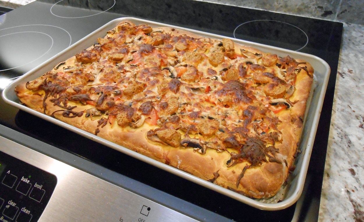 The dough is part of a California Pizza recipe. I looked for it online before writing this post and it’s gone. I will put the Sauce, Toppings, and preparation instructions for that recipe at the bottom of this post. I put sliced tomatoes, white mushrooms, plant-based Italian sausage, and part-skim mozzarella cheese on my Pizza. I think the dough would make really good bread sticks too, but I have not tried that yet.
