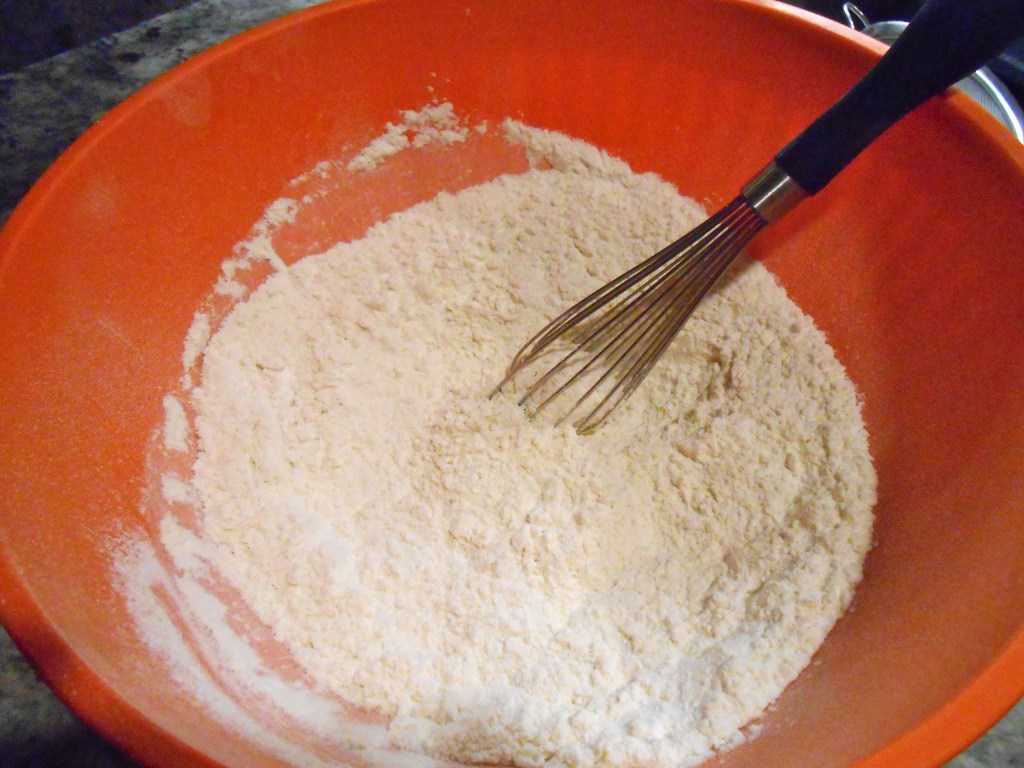 | 3. | Sift dry ingredients together in a large bowl. Mix further with a whisk. |