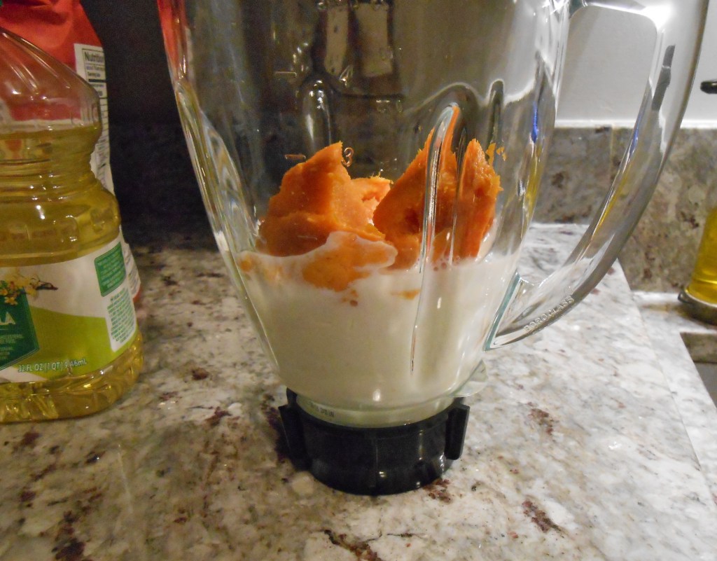 | 4. | Blend sweet potato with milk. (I pureed the mixture in a blender) |