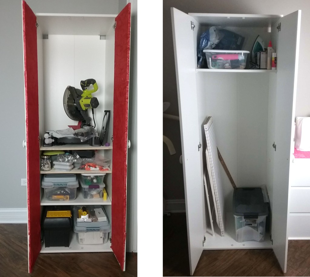 When I saw the Godishus model on Ikea’s website, right away I thought it would be a good hack. I wondered if others had already noticed its potential and taken advantage of it. To my surprise, I did not find any hacks. No problem, I said to myself. It will suit my needs just fine. I bought two units; one for tool storage and the other for sewing supplies storage.