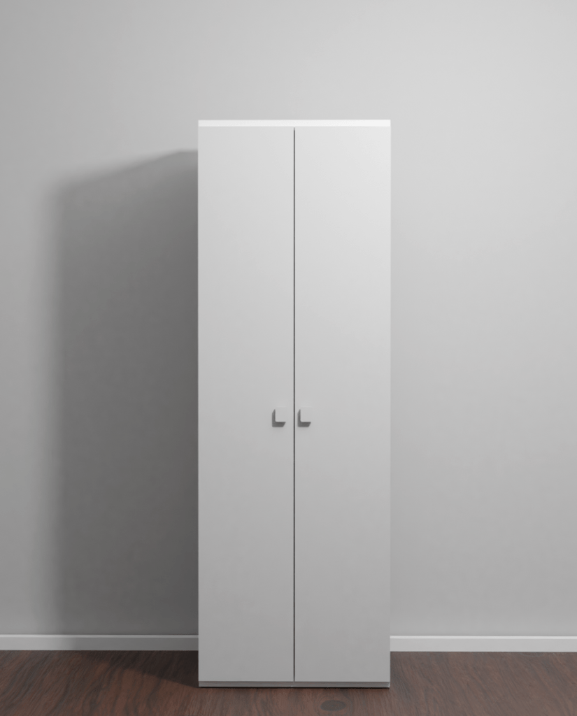 I made simple changes to the cabinet in this render. I added a gray color to match the walls so that the cabinet fades into the background. Cabinet sides, doors, and knobs were painted gray.